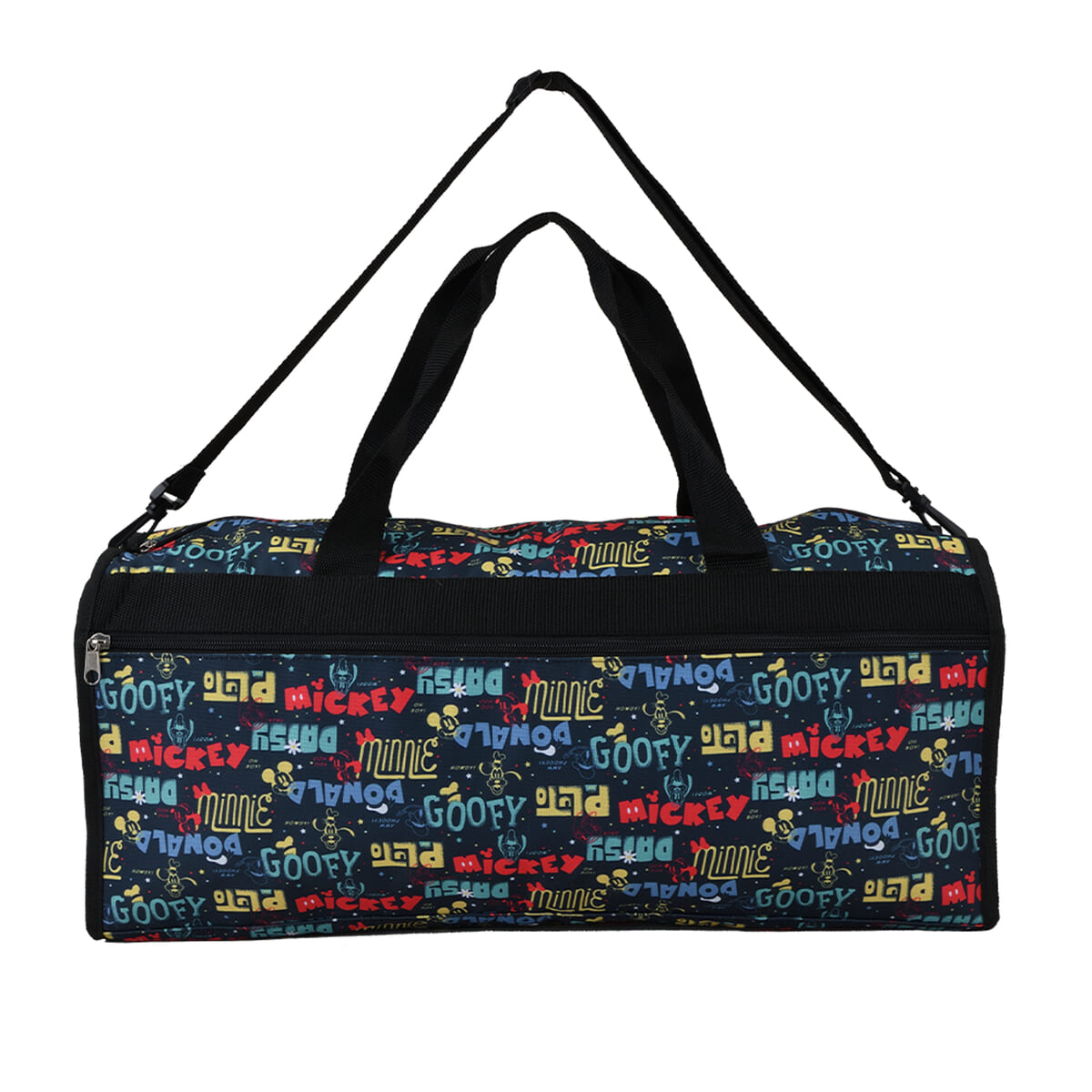 「ミッキーマウス」や「ミニーマウス」「ドナルドダック」「グーフィー」たちのネームロゴが描かれたビッグサイズのボストンバッグ。