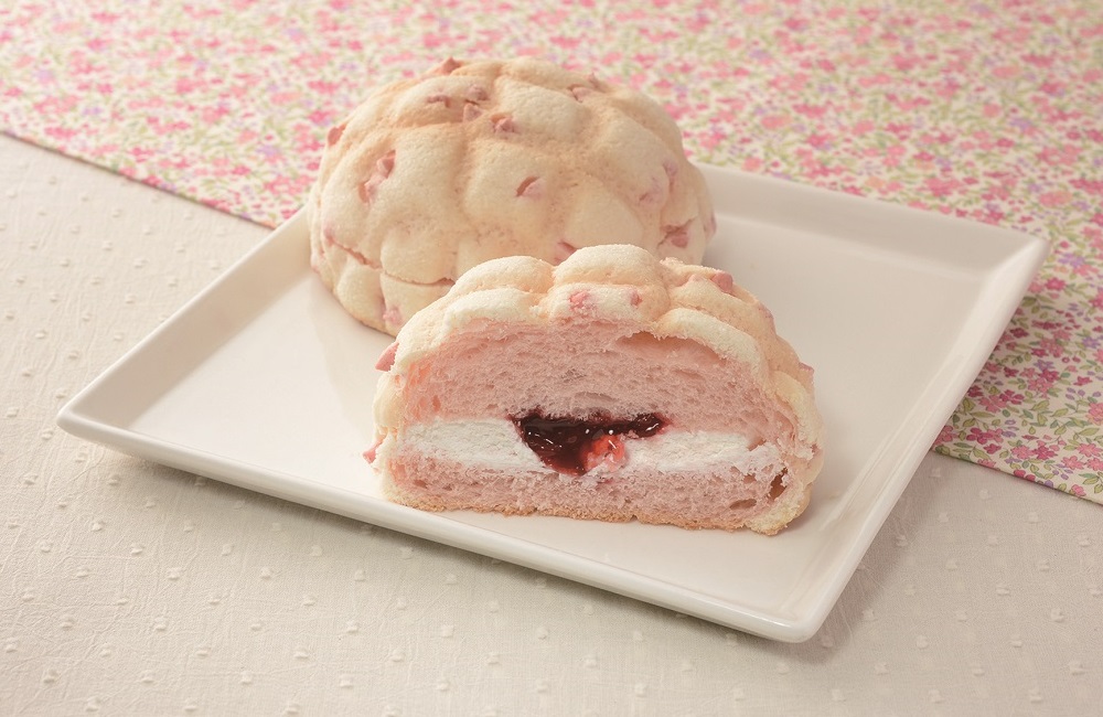 パンにはいちごクリームを折り込み、華やかな見た目に仕上げられています。