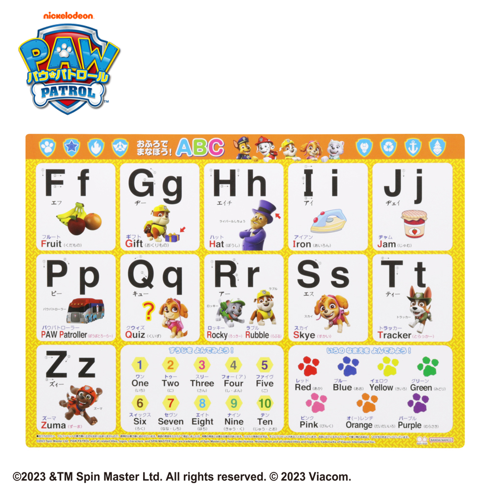 「パウ・パトロール」のキャラクターたちと一緒にアルファベットを学べる「おふろでまなぼう!ABC」