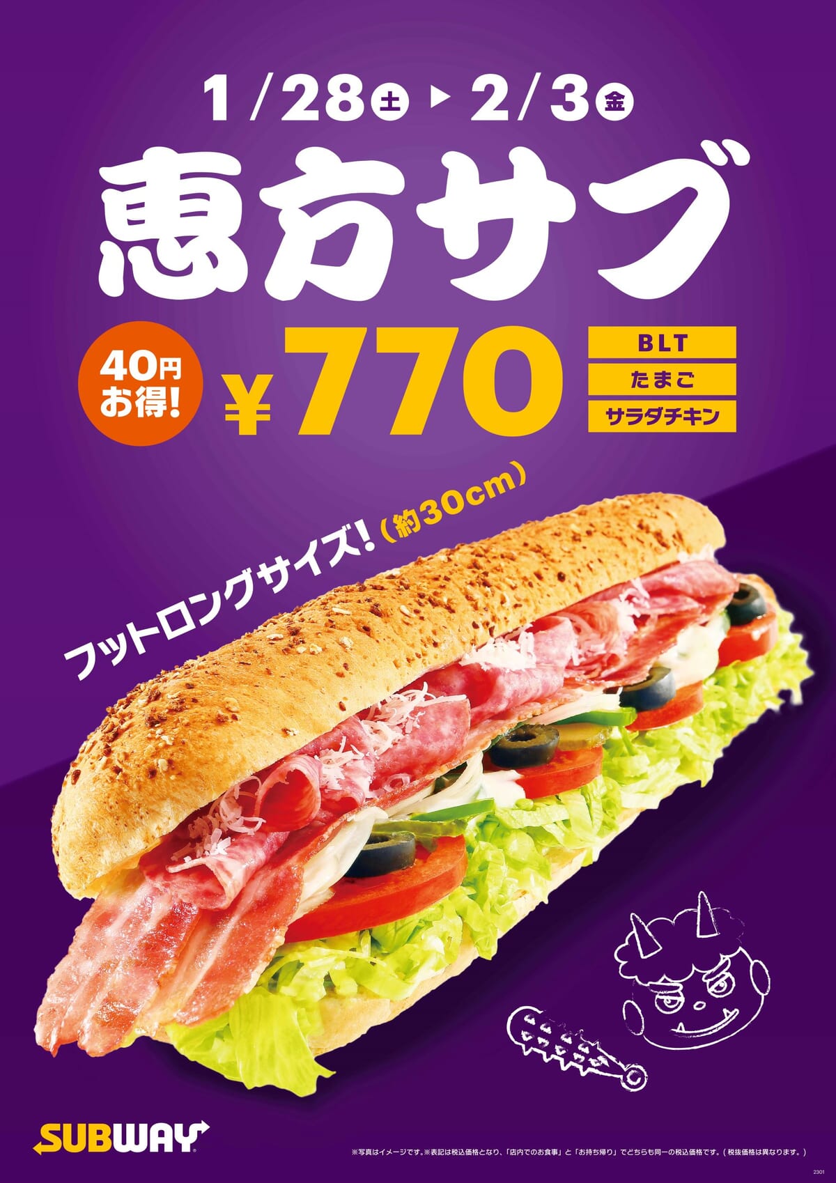 また、節分の日までの期間限定で、フットロングサイズの対象メニューを特別価格で提供するキャンペーンも実施されます☆