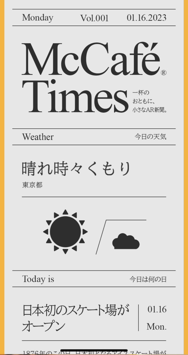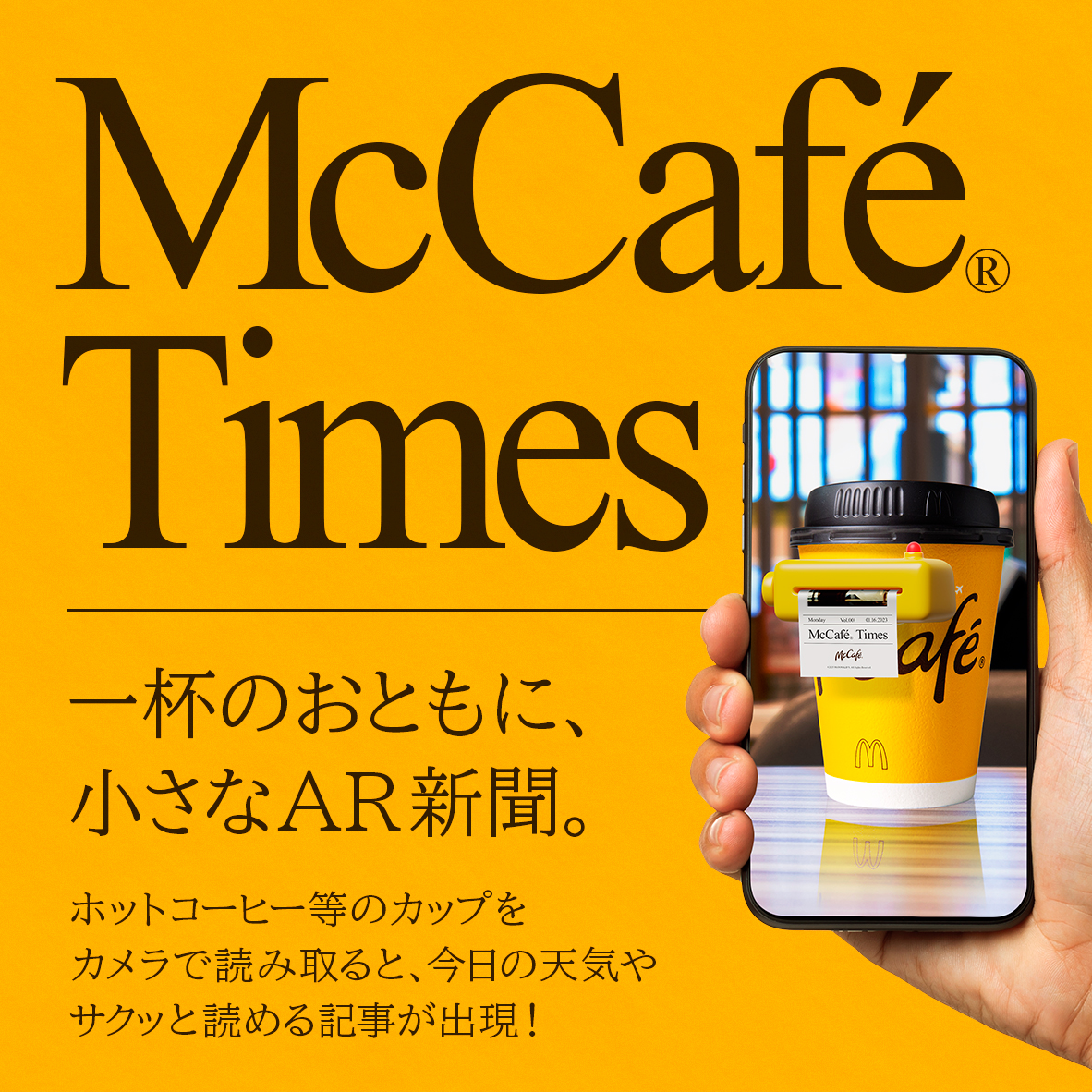 「プレミアムローストコーヒー」(ホット)がリニューアルされるのを記念し、マクドナルド公式アプリから閲覧できるARコンテンツ「McCafé Times」を期間限定で公開。