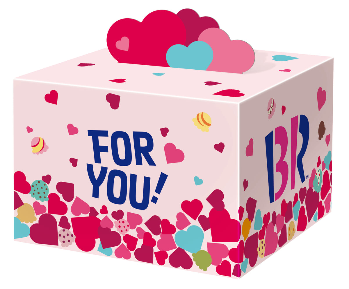 期間限定デザインのボックスにお好みのアイスクリームを4個選んだら、自分だけのキュートなハートボックスが完成します。