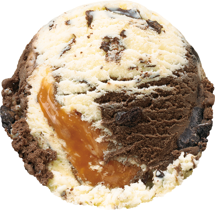 人気の4フレーバー、チョコレートチップ、チョコレート、キャラメルリボン、クッキーアンドクリームがひとつに!