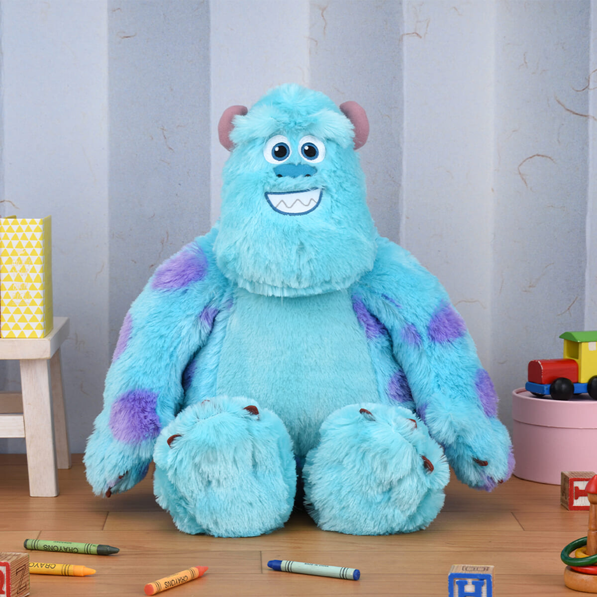 ディズニー&ピクサーの映画『モンスターズ・インク』から、「サリー」こと「ジェームズ・P・サリバン」のメガジャンボぬいぐるみが登場。