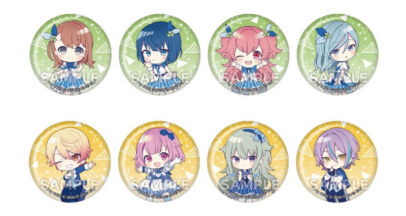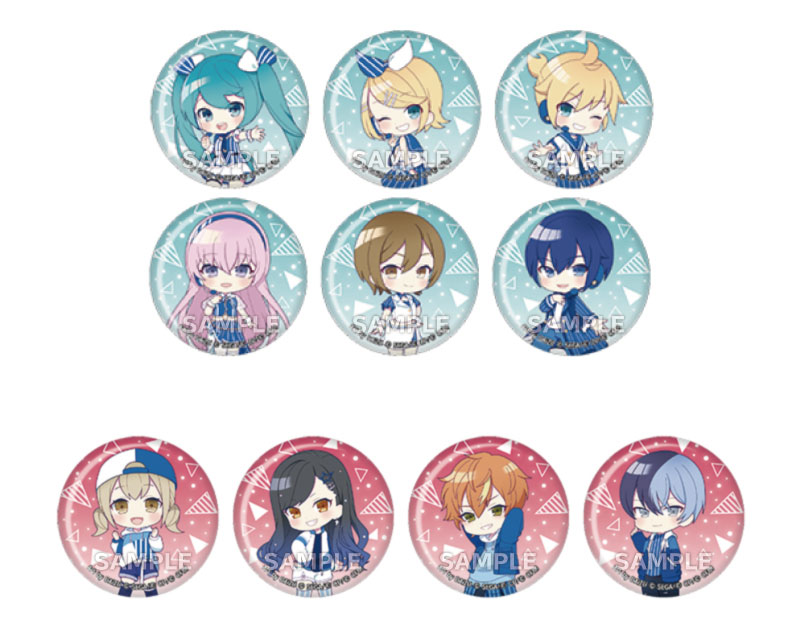 バーチャル・シンガーと各ユニットのメンバーが描かれた「ホログラム缶バッジ」