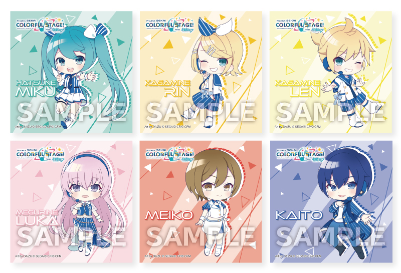 オリジナルグッズには「初音ミク」「星乃一歌」「花里みのり」「小豆沢こはね」「天馬司」「宵崎奏」の6人がオリジナル衣装を着用した描き下ろしイラストを使用。