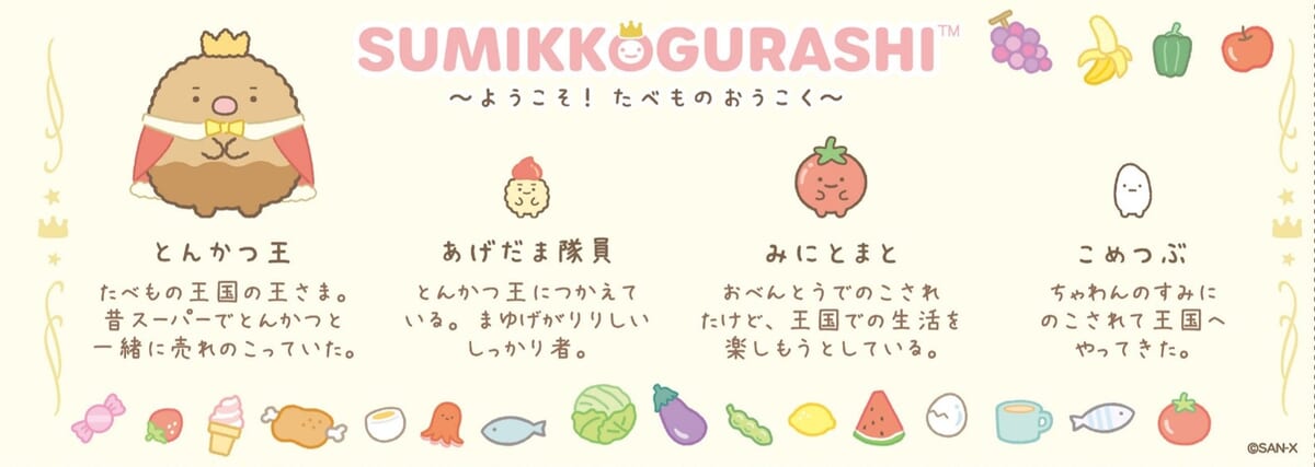 「すみっコぐらし」から、新テーマ『ようこそ!たべものおうこく』が誕生!
