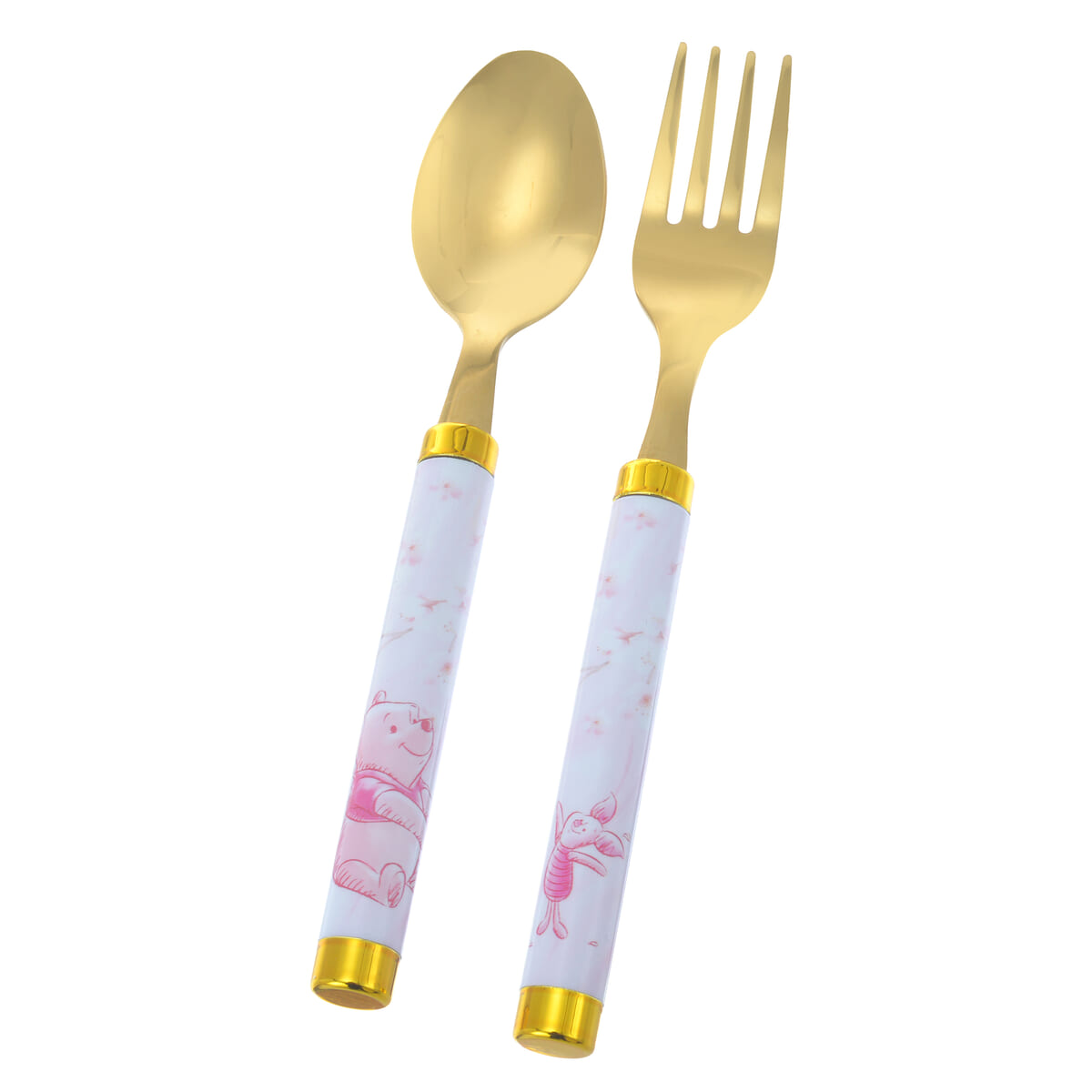 お花見をしている「プーさん」と「ピグレット」がそれぞれに描かれたカトラリーセット。