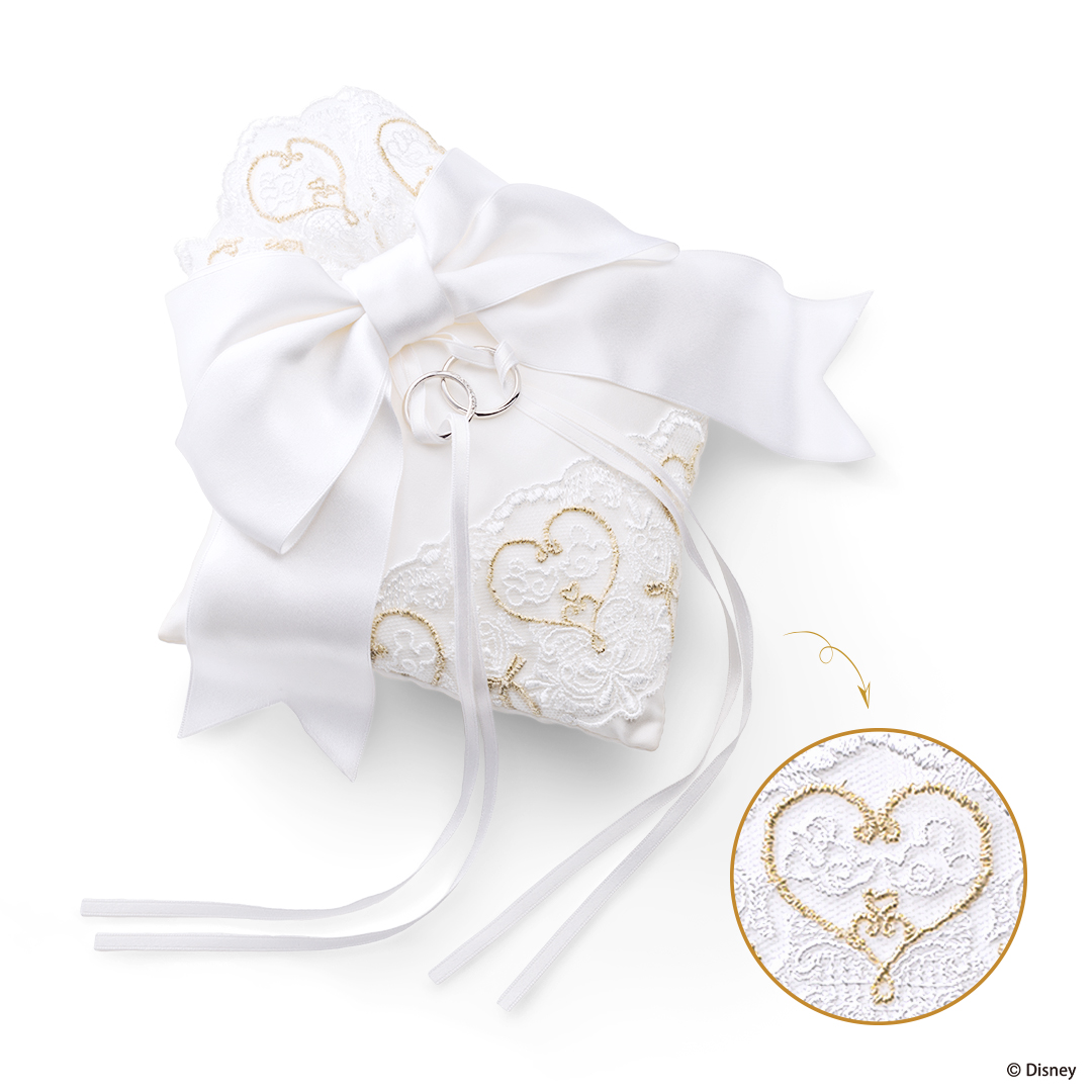 純白レースに金糸がきらめく!ケイウノ<ディズニー>「リングピロー/ブライダルハンカチ」
