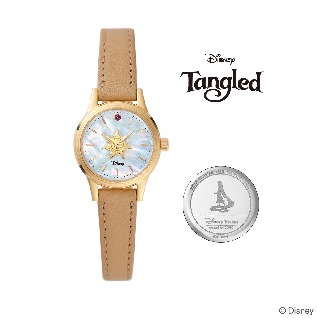 リューズには、「ラプンツェル」のドレスをイメージさせるパープルカラーの天然石「アメシスト」がきらめきます。