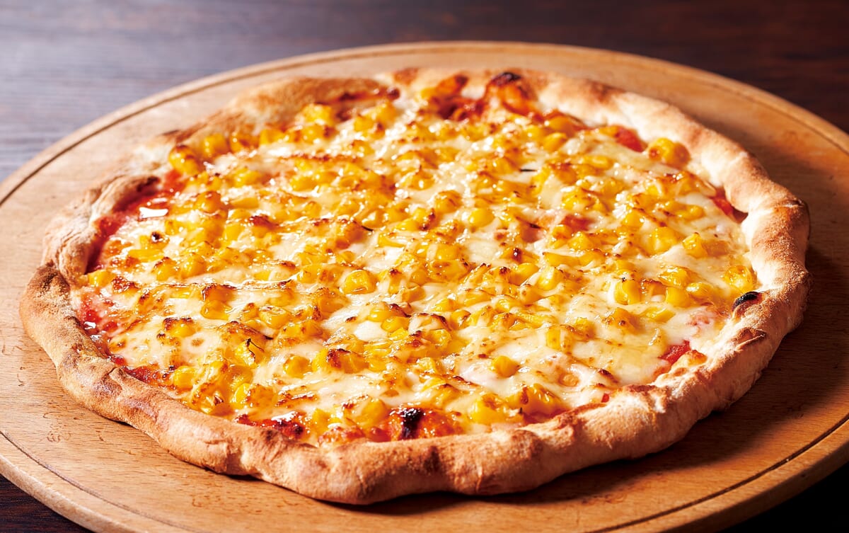 マヨネーズとコーンがたっぷりのったピザ。