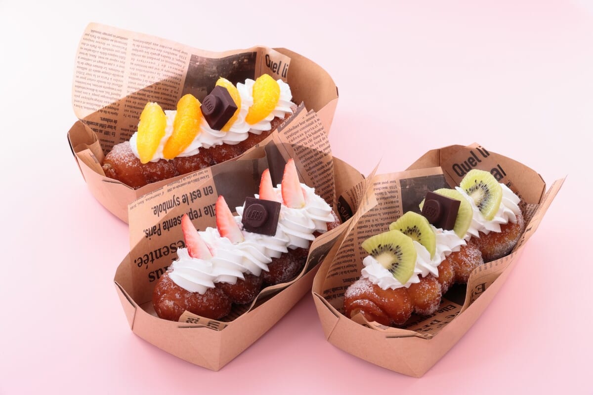甘いツイストドーナツにいちごやオレンジなどの季節のフルーツをトッピングしたスイーツ。