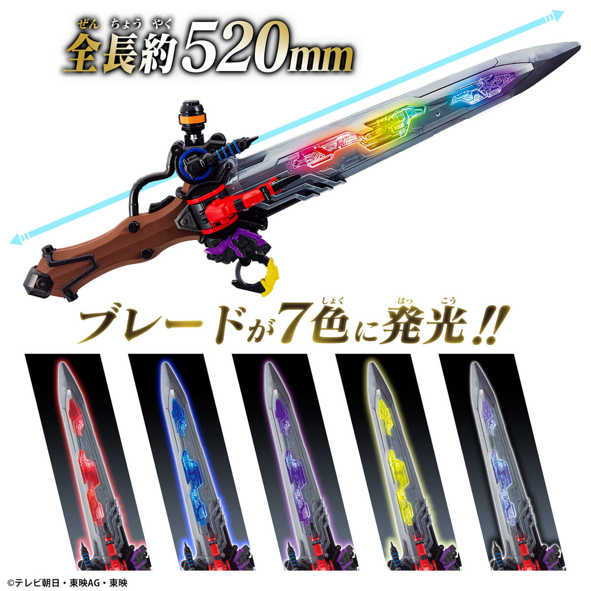 全長約520mmという超ビッグサイズの剣で、7色LEDが虹色に発光します。