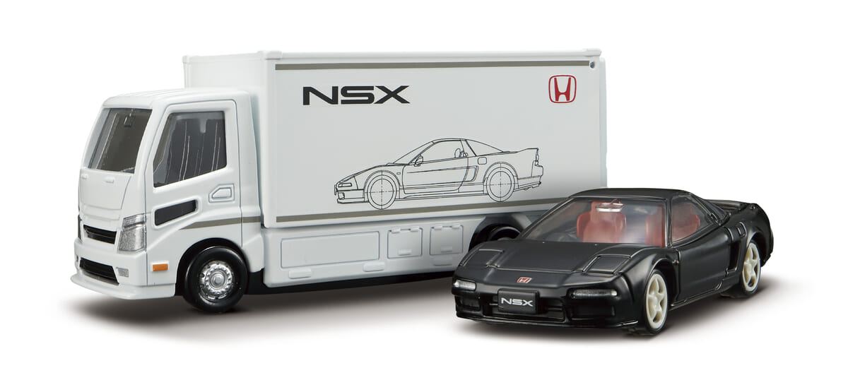 黒の「ホンダNSX Type R」と白の車両積載車のセット。