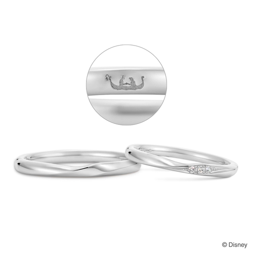 『塔の上のラプンツェル』のゴンドラのシーンから、ランタンの輝きが空へ舞い上がっていく様子がイメージされた結婚指輪です。