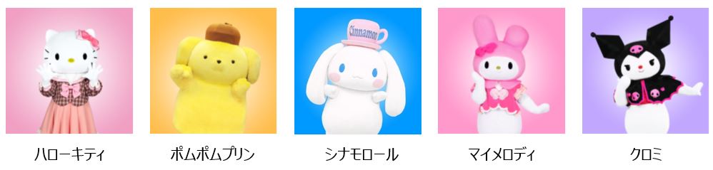 サンリオキャラクターズからは、両日ともに「ハローキティ」「ポムポムプリン」「シナモロール」「マイメロディ」「クロミ」が出演します!