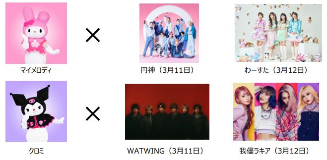 出演アーティスト:9bic、CUBERS、WATWING、円神、パンダドラゴン、ピューロボーイズ、ハローキティ、ポムポムプリン、シナモロール、マイメロディ、クロミ