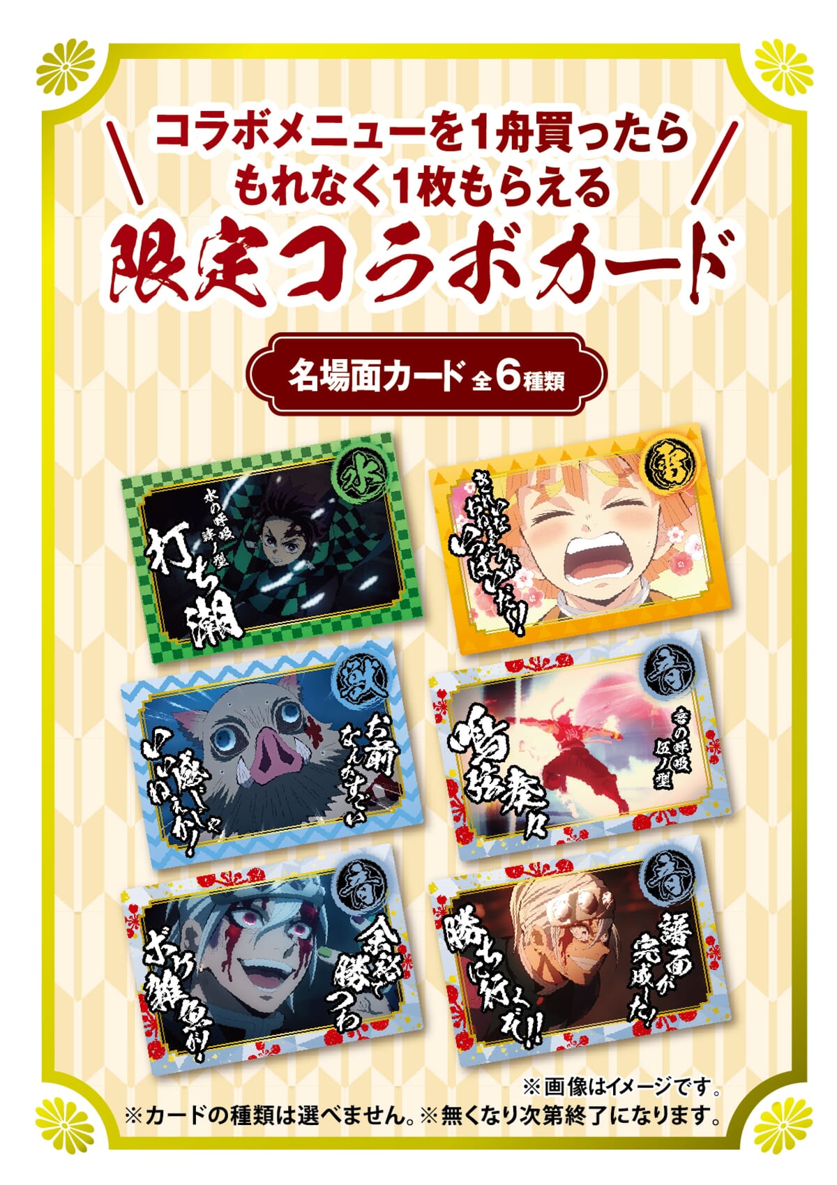 さらに「宇髄天元のお祭りチーズ明太(8個入り)」1舟購入で、限定コラボカードが1枚もらえます☆