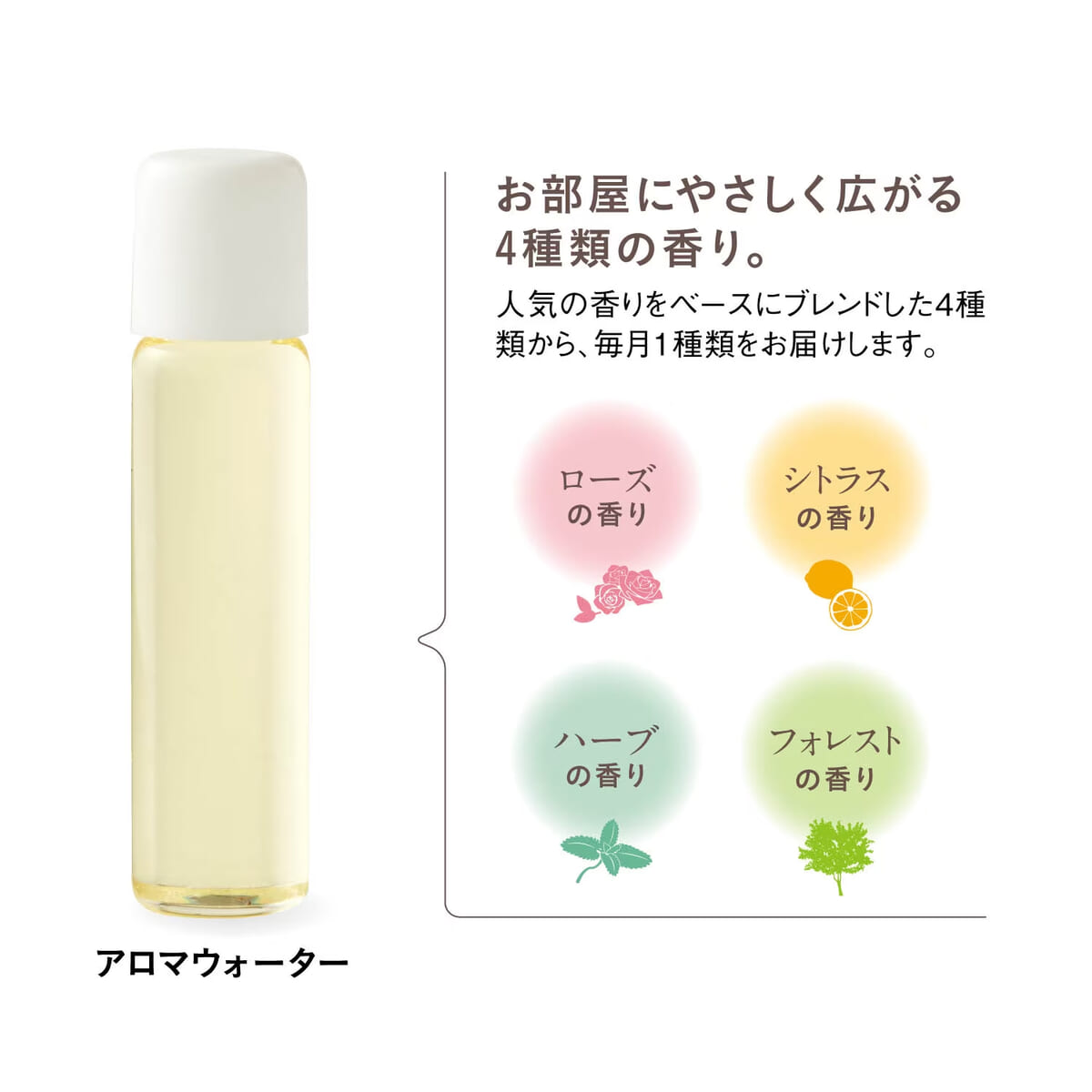 ※水、アロマウォーターを入れる容器はセットしていません。ご家庭にある安定のよいガラスコップ、瓶などを利用ください