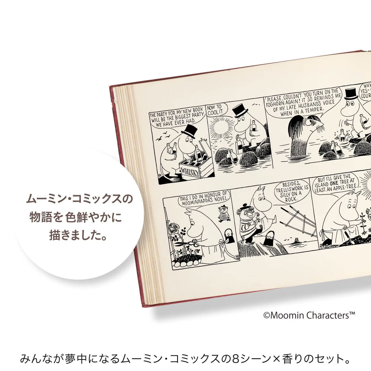 ムーミン・コミックスのワンシーンをインテリアとして楽しみながら、ほんのり香るアロマに癒やされます。