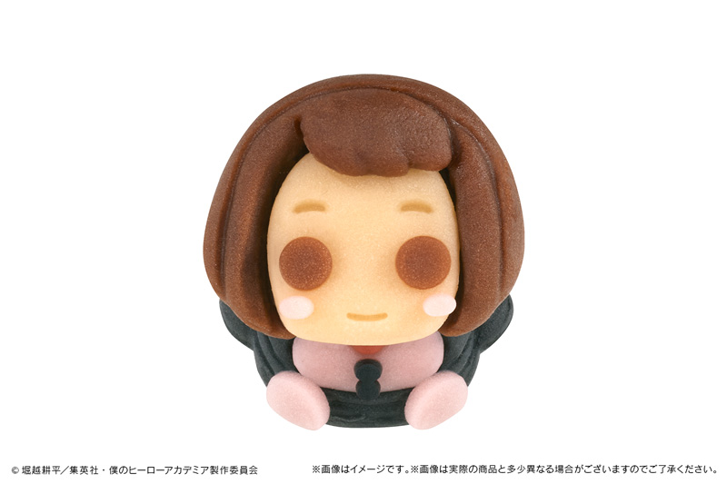 現在第6期が放送中の大人気TVアニメ『僕のヒーローアカデミア』のキャラクターより、「緑谷出久」「爆豪勝己」「麗日お茶子」の3キャラクターを和菓子で再現。