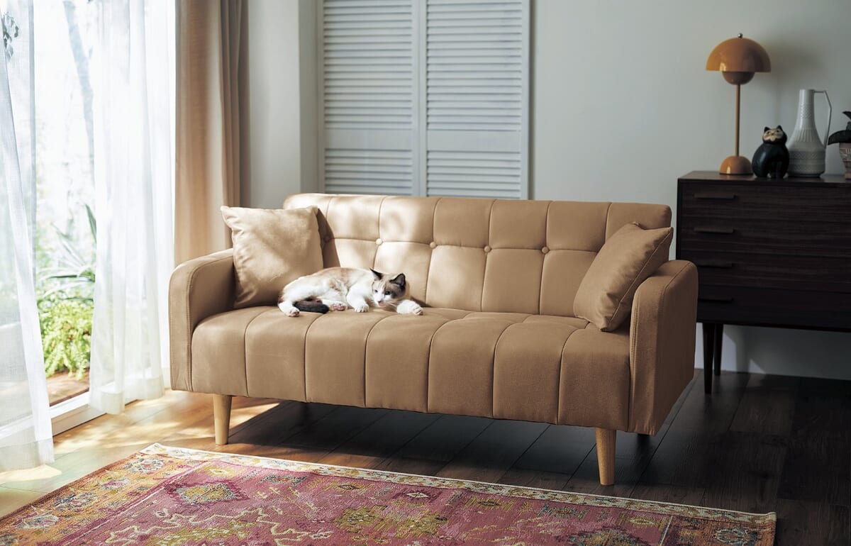 「引っ掻き傷に強い合皮風ソファー」なら、猫の爪にビクビクしないで一緒にくつろげます。
