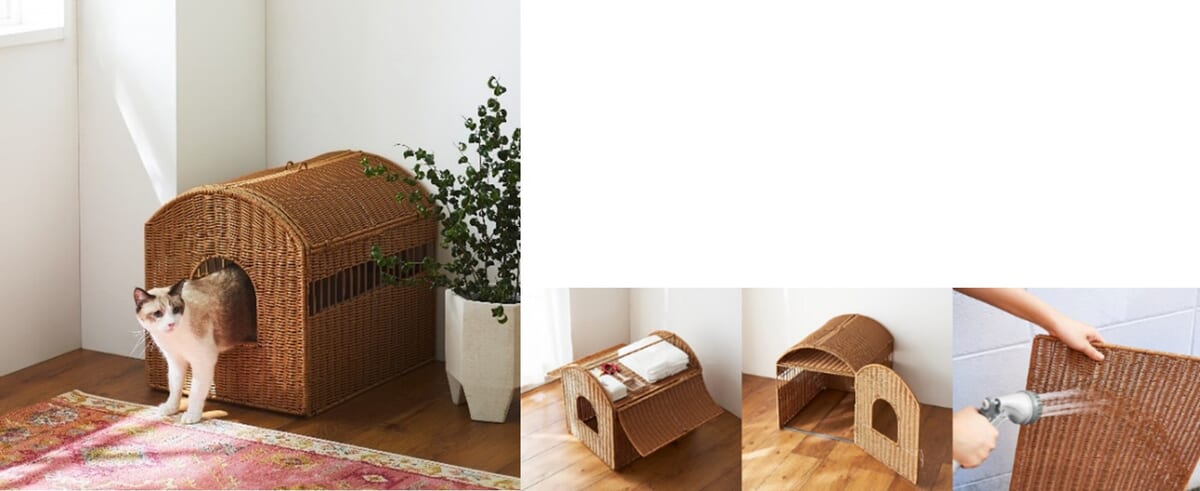 猫トイレをオシャレにカバーしてくれる「洗えるラタン調の猫トイレカバー」は、暮らしに馴染むデザイン。