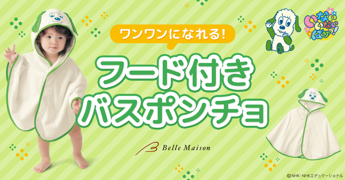 今回は『いないいないばあっ!』デザイン「ワンワンになれる!フード付きバスポンチョ」を紹介します☆