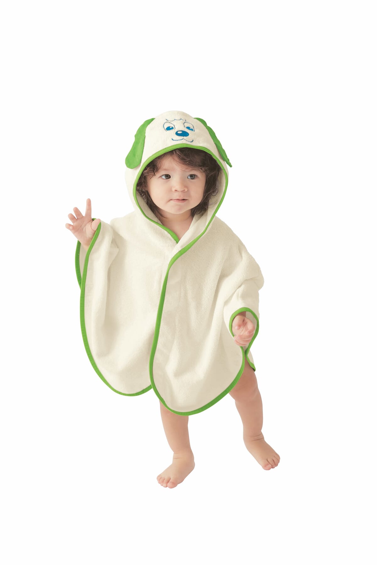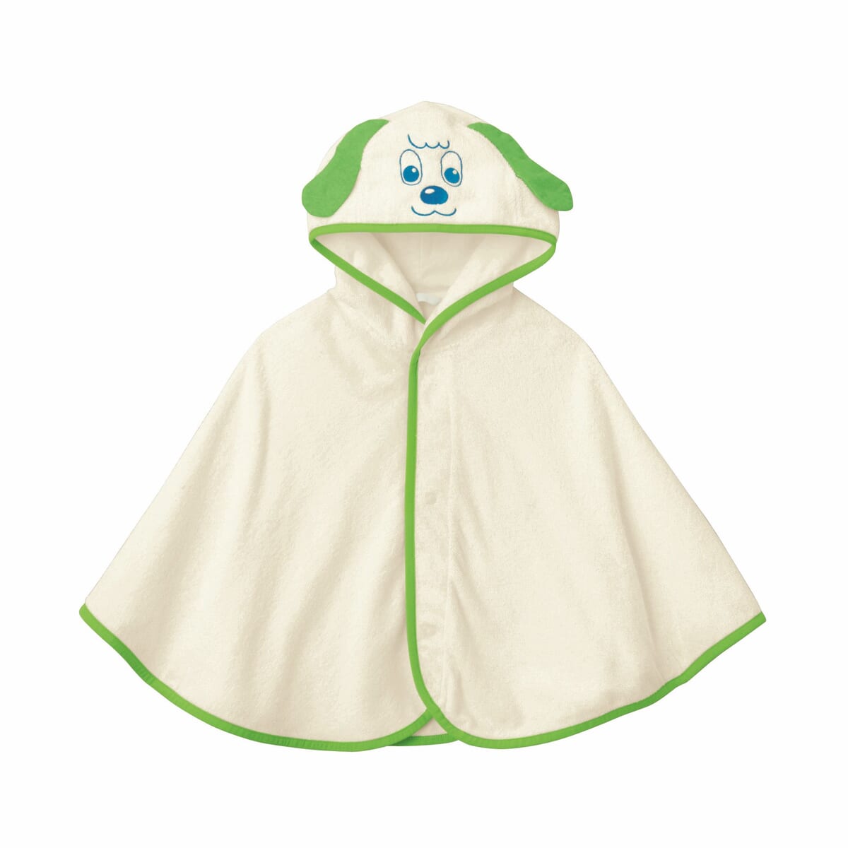 今回、子どものお風呂あがりにサッと着せられて一瞬で「ワンワン」になりきれるフード付きのバスポンチョが登場しました。