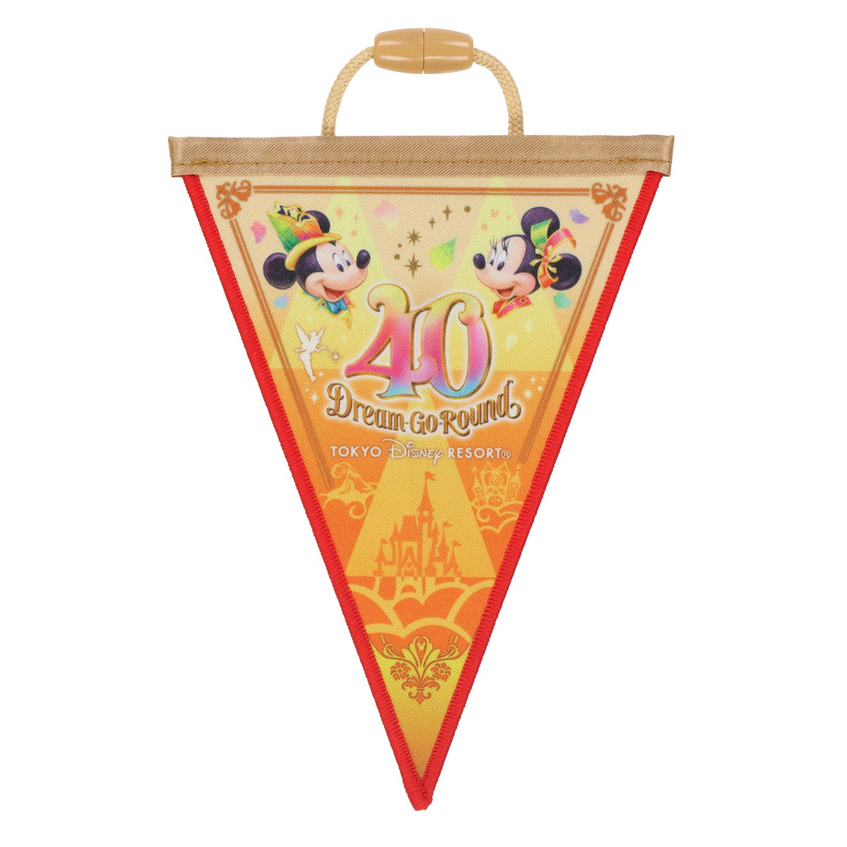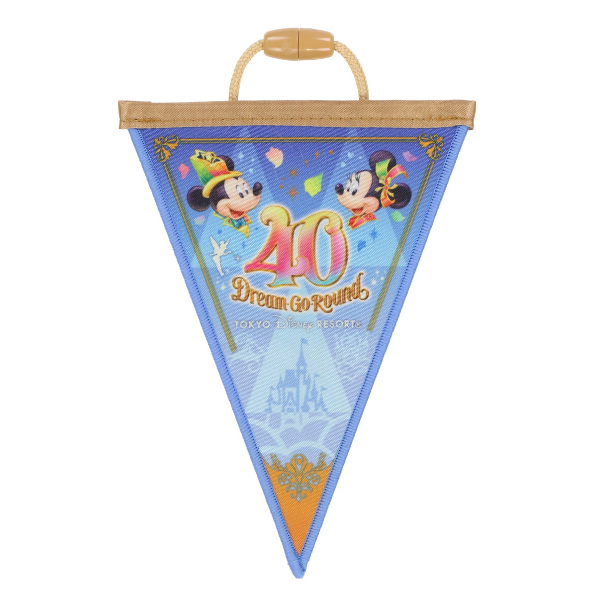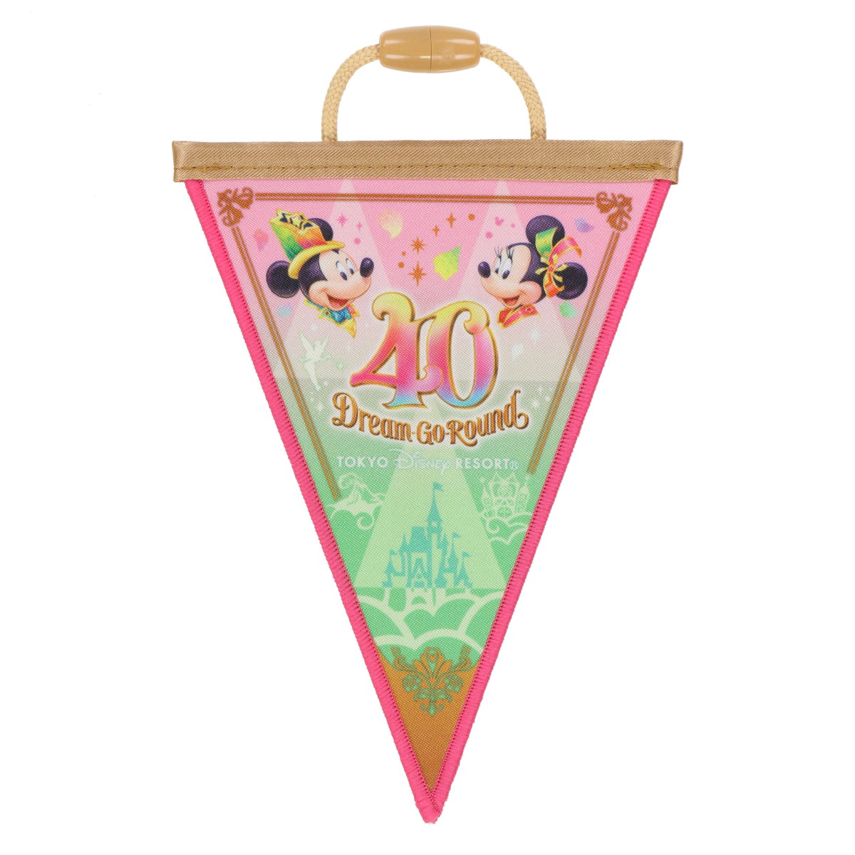 シンデレラ城の前に40周年のコスチュームを身につけた「ミッキーマウス」がポーズをとったデザインです。