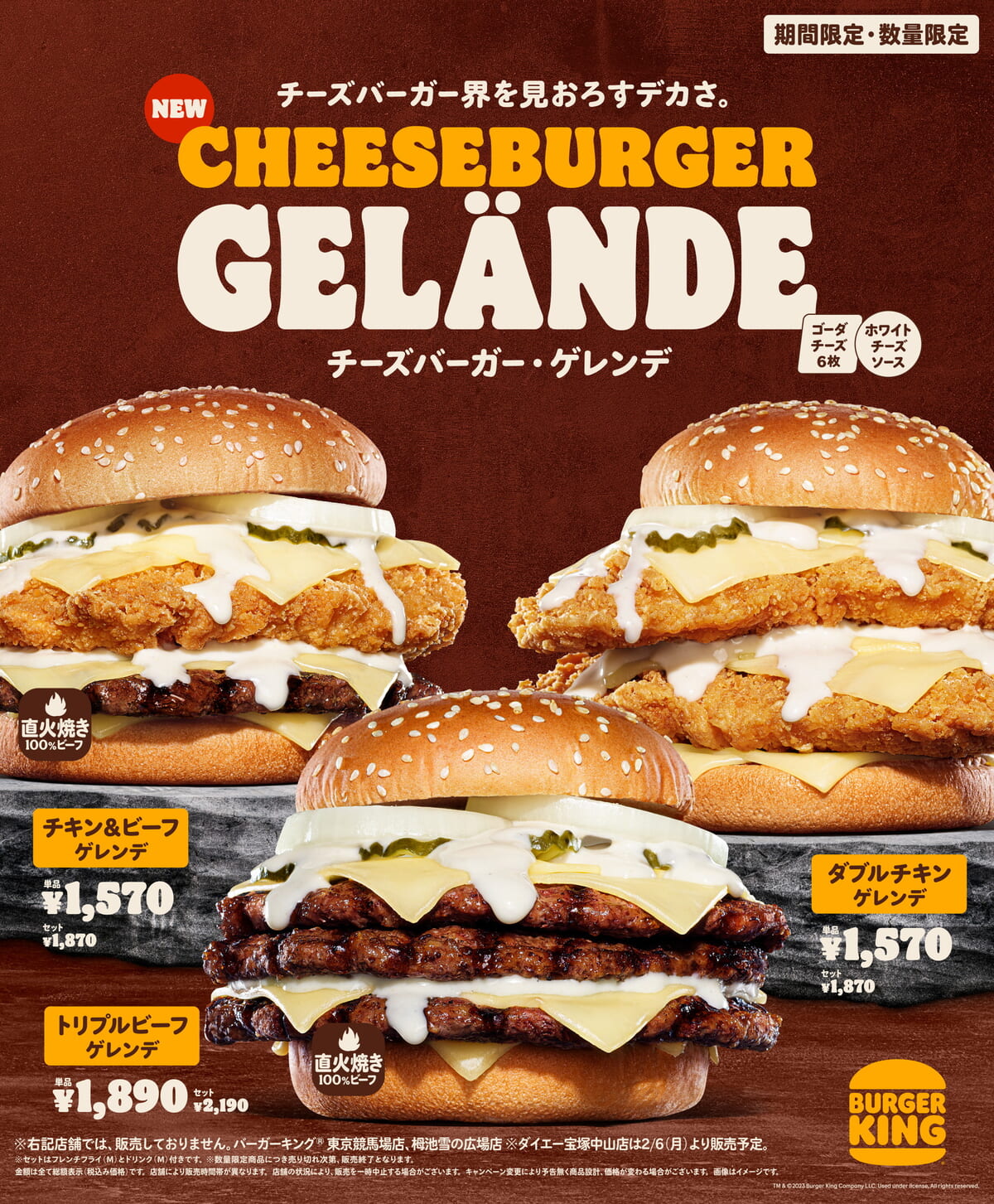 バーガーキング2023年最初の期間限定メニューとして、味もサイズも別格の「チーズバーガー・ゲレンデ」が登場!