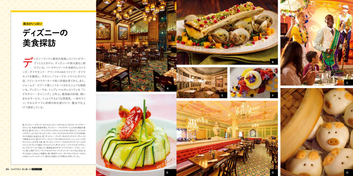 エプコットのインターナショナル・フード&ワイン・フェスティバルで、世界中の料理を味わったりと、ディズニーのパークやリゾートを楽しみ尽くす方法を章ごとに数多く紹介しています。