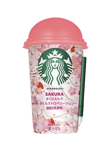 「スターバックス さくらミルク with さくらストロベリージェリー」は、華やかなさくらの香りにクリーミーなミルクを合わせたチルドカップ。