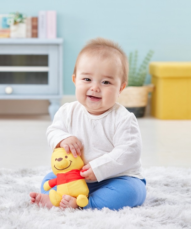 タカラトミーから、赤ちゃんのぐずった気持ちを切り替えるメロディや効果音を内蔵した「くまのプーさん」の「赤ちゃんけろっとスイッチぬいぐるみ」が登場。