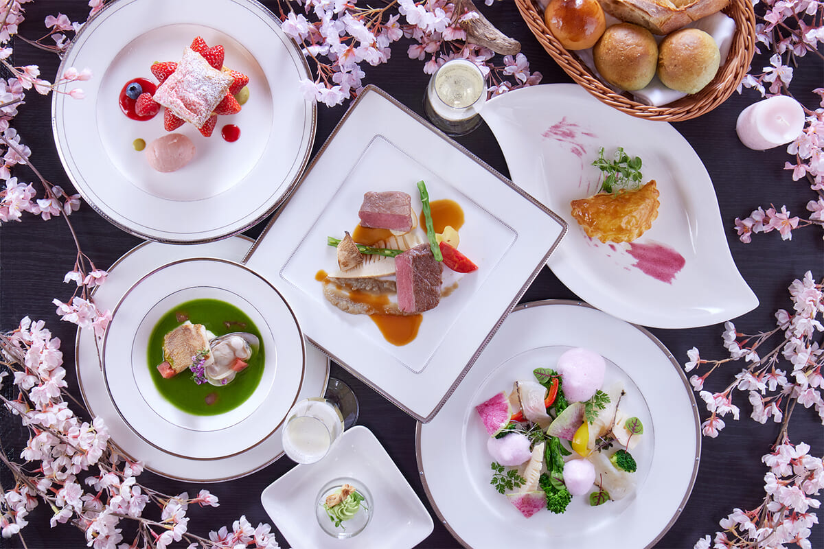 ディナーコースも、桜の美しい季節にぴったりのメニューを提供。