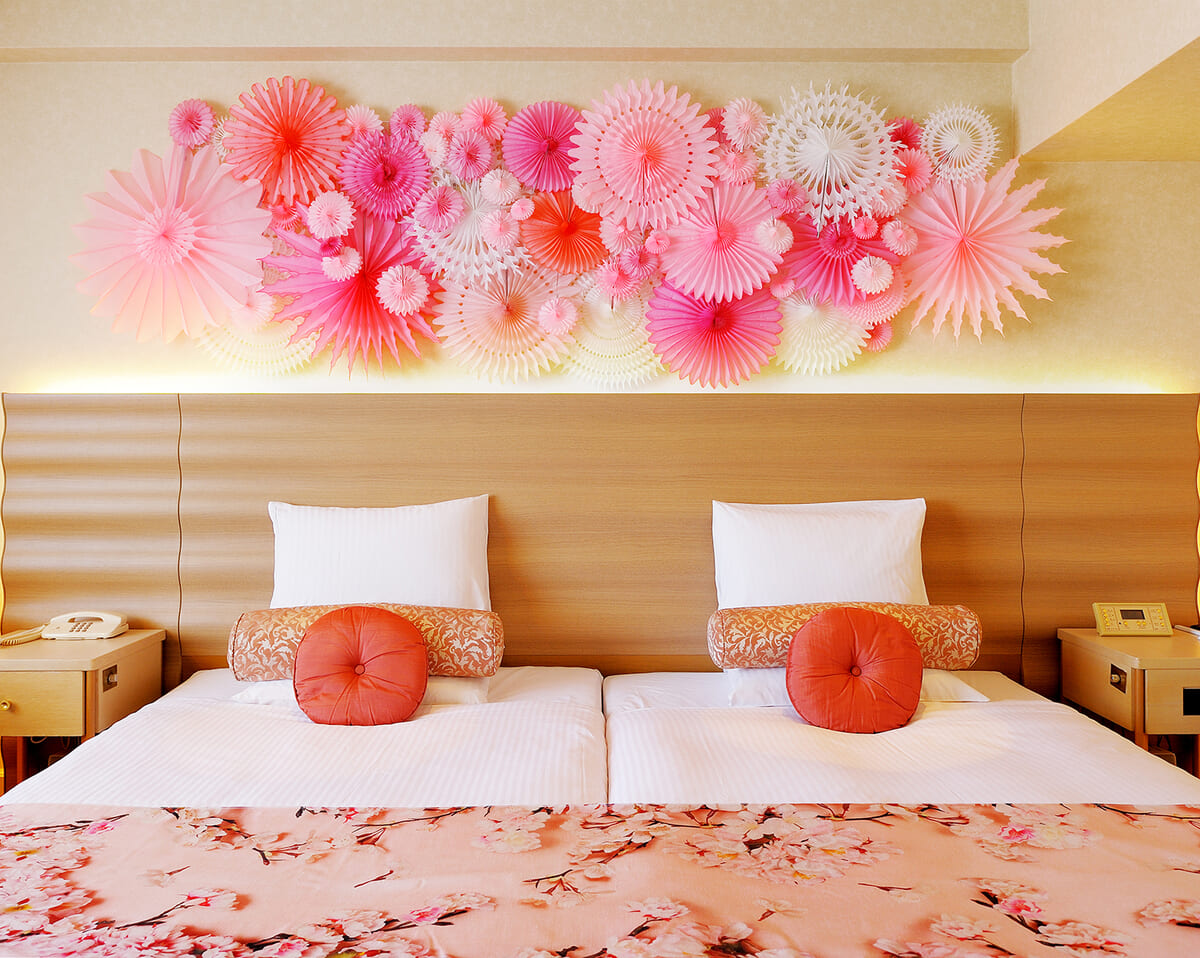色鮮やかなサクラクルール(桜色)のペーパーファンで心弾む春のひとときを表現した、室数限定の「コンセプトルーム~SAKURA日和~」に宿泊できるプラン。