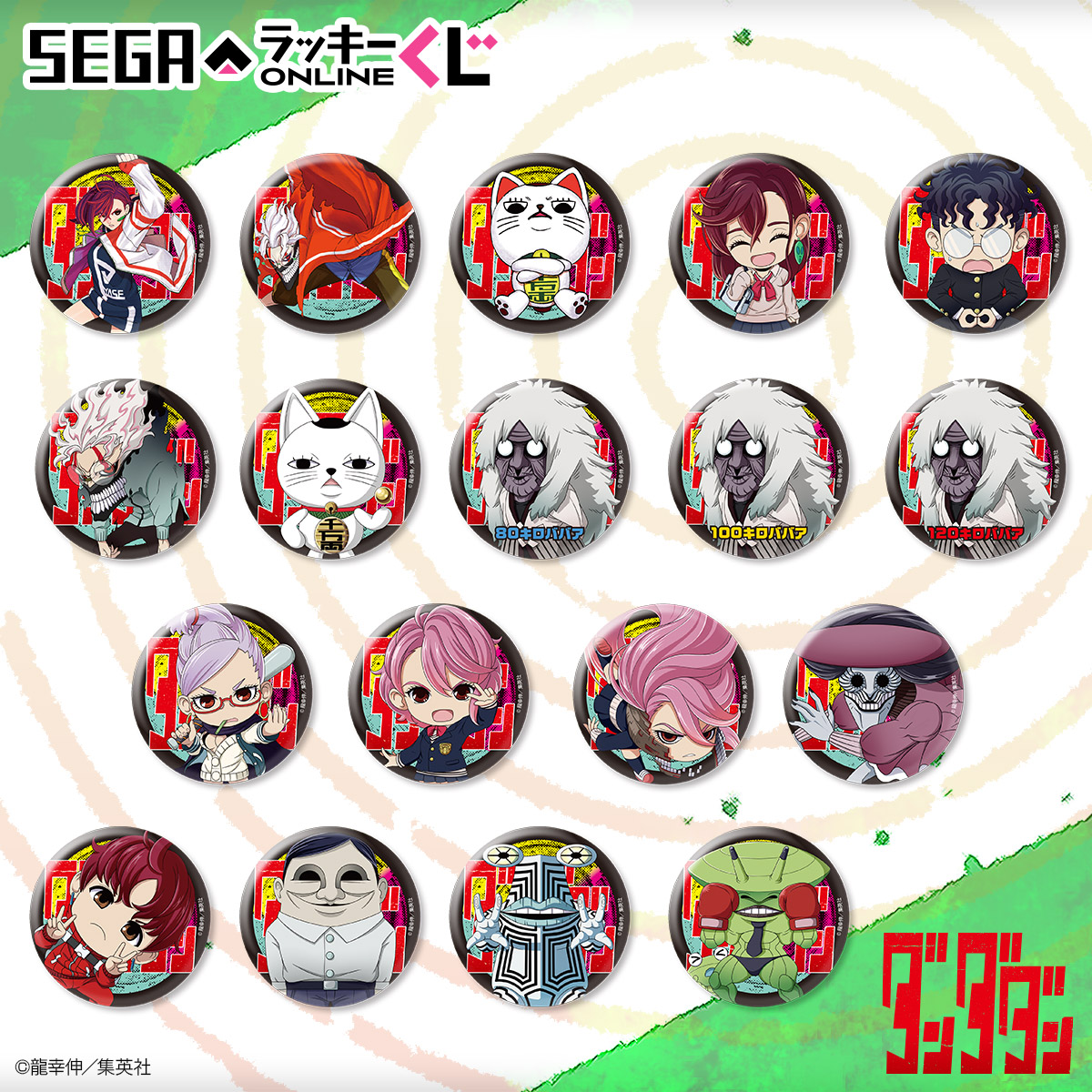 インターネット上で引けるハズレなしのキャラクターくじ「セガ ラッキーくじオンライン」に、人気漫画『ダンダダン』が登場!