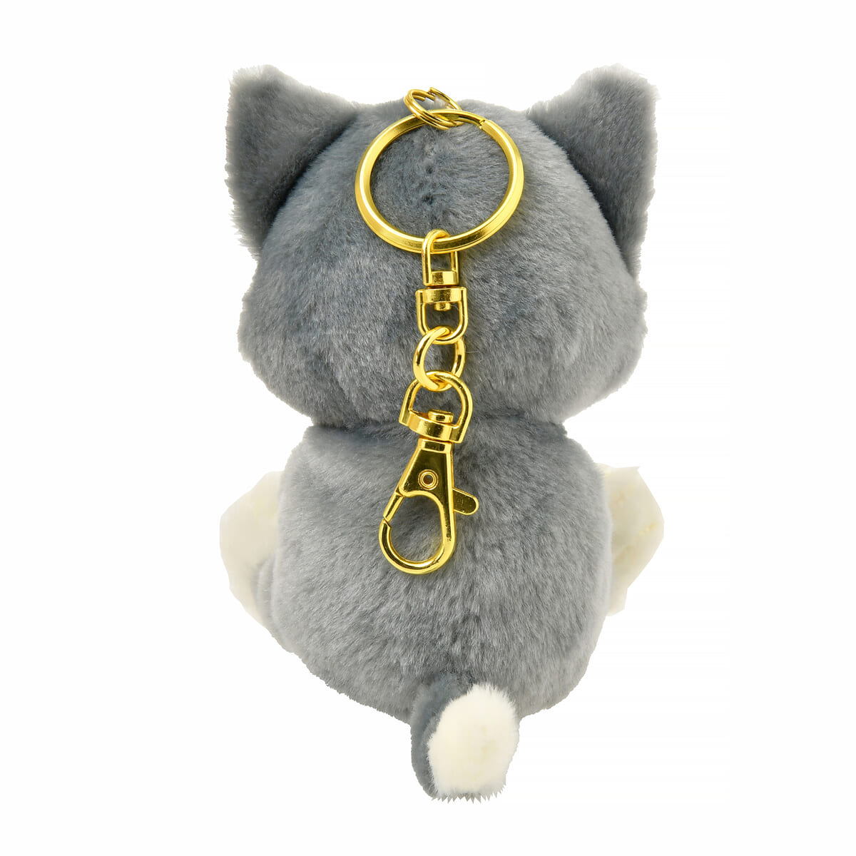 足を開いてお座りする「フィガロ」をデザインしたぬいぐるみキーホルダー。