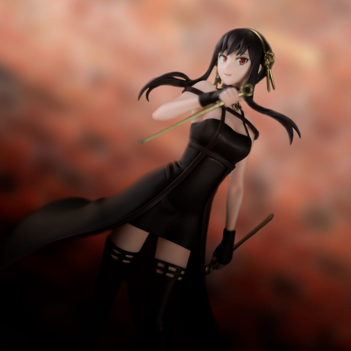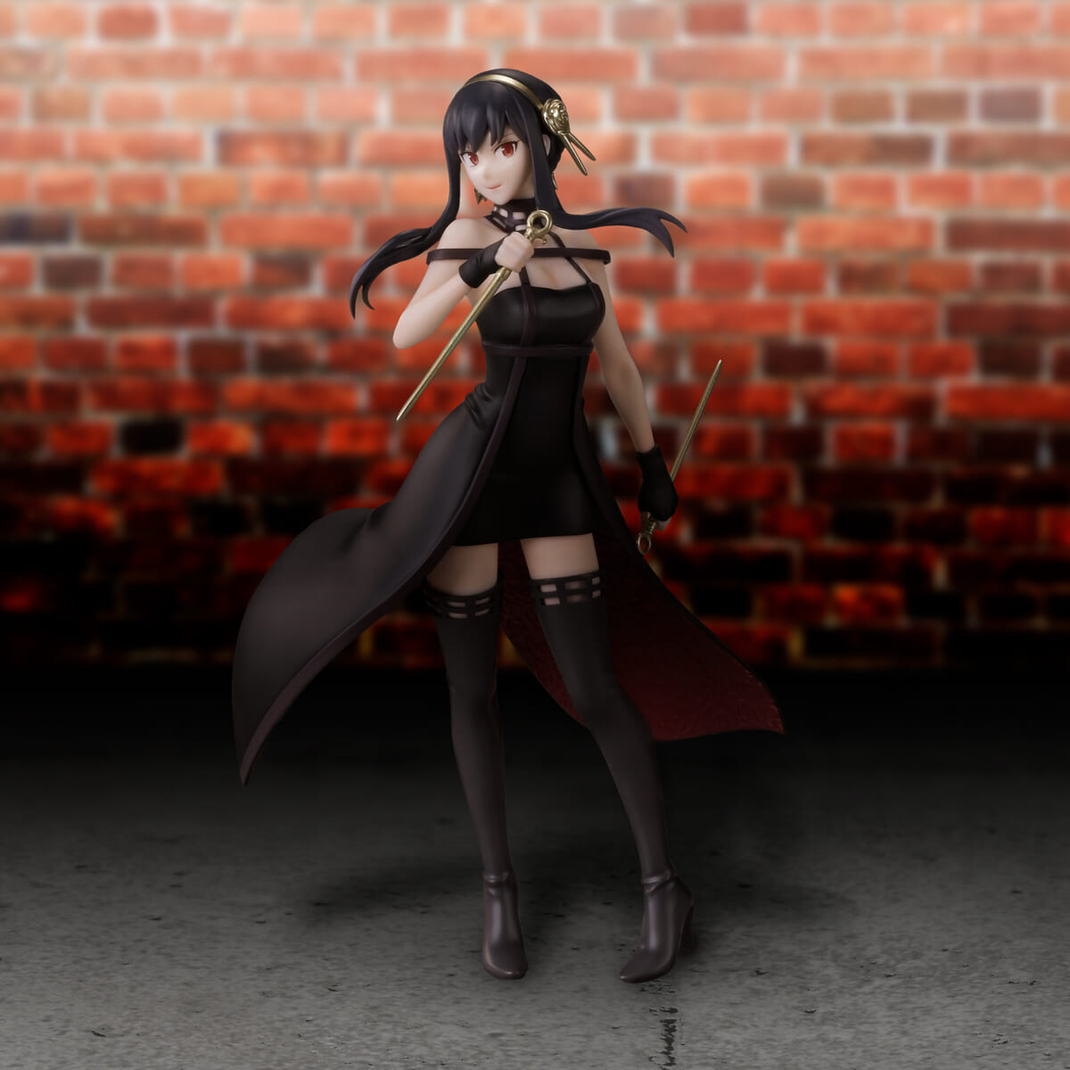 殺し屋「いばら姫」として暗躍する「ヨル・フォージャー」を再現したプレミアムフィギュア。