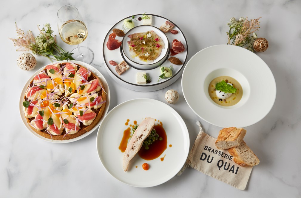 ブラッスリー・デュ・ケでは、カジュアルな雰囲気の店内で、春の素材を使った味を満喫できるウィークエンドランチが提供されます。