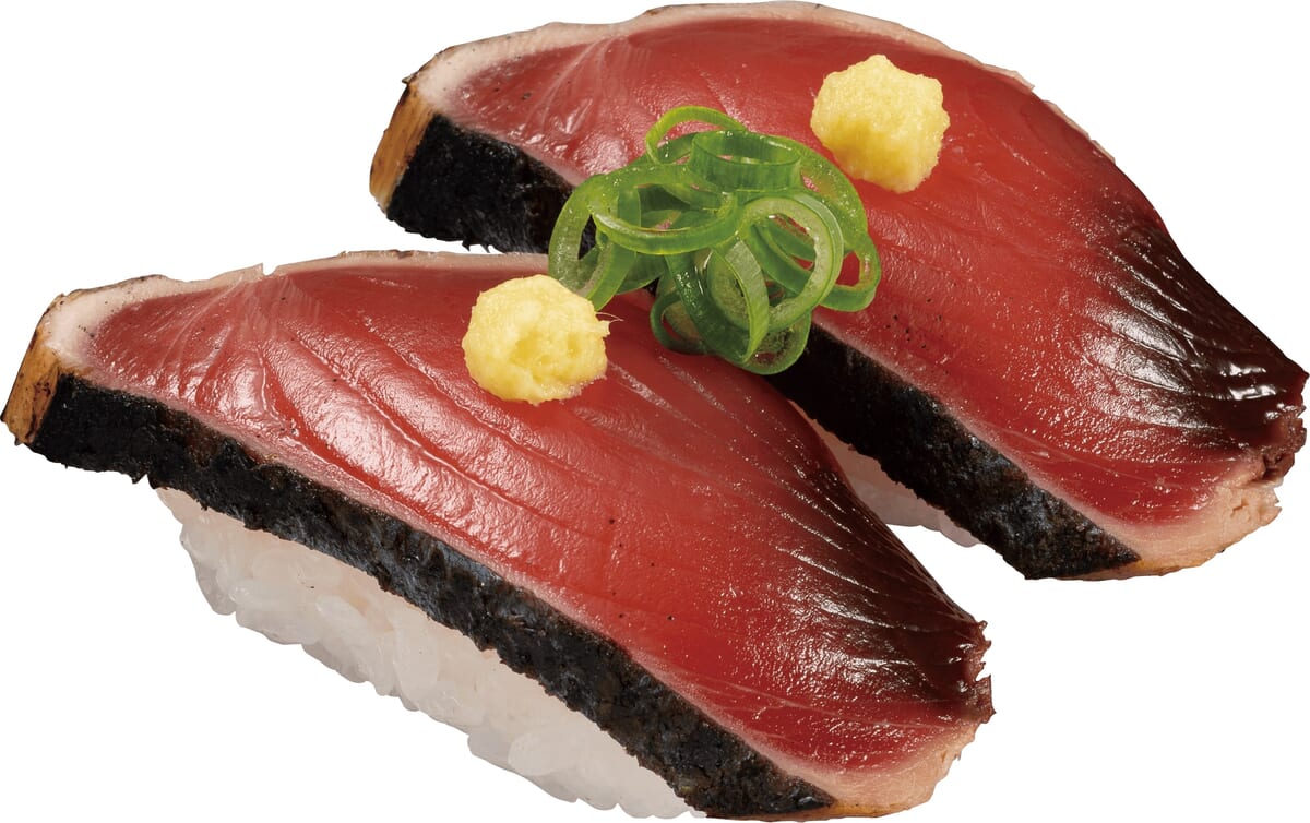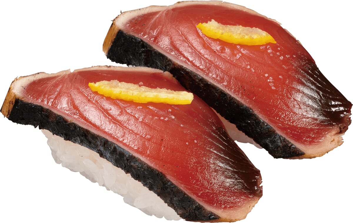 ※『国産炭焼きかつおたたき』『柚子塩 国産炭焼きかつおたたき』は一皿二貫、そのほかの商品は一皿一貫100円(税込110円)となります