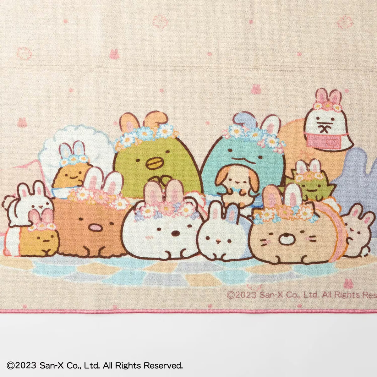 「すみっコ」たちと、仲良しの「みにっコ」たちが大集合した、愛らしいマット。