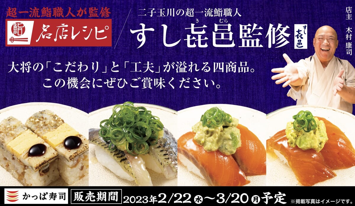 「すし㐂邑(きむら)」監修「名店レシピ」は、かっぱ寿司全店にて、2023年2月22日より発売です☆