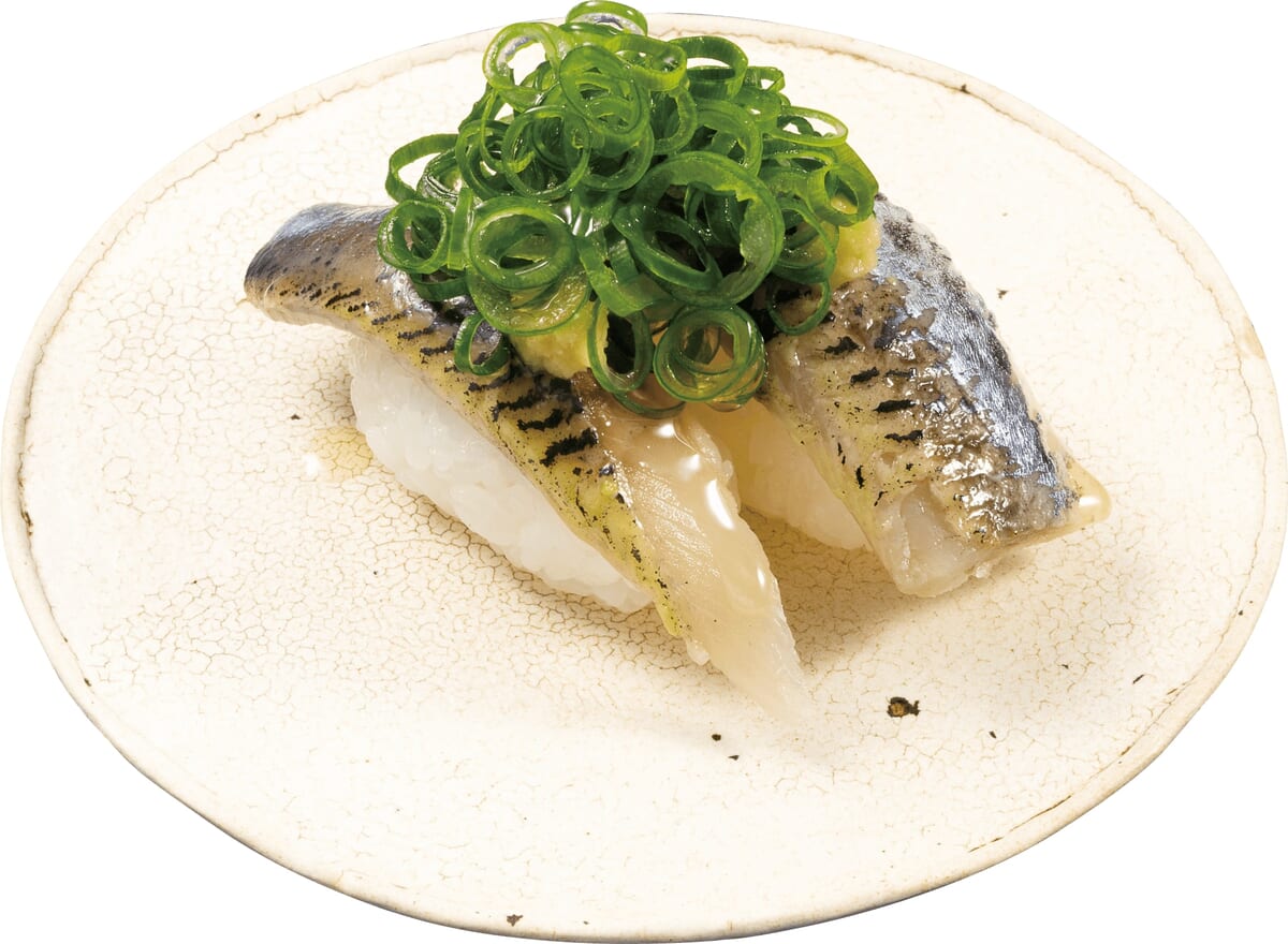 最適なバランスを追及した「ふり塩」を施した三陸産とろいわしに、山盛りの「青葱」をのせ、「ごま油」を垂らして仕立てたお寿司。