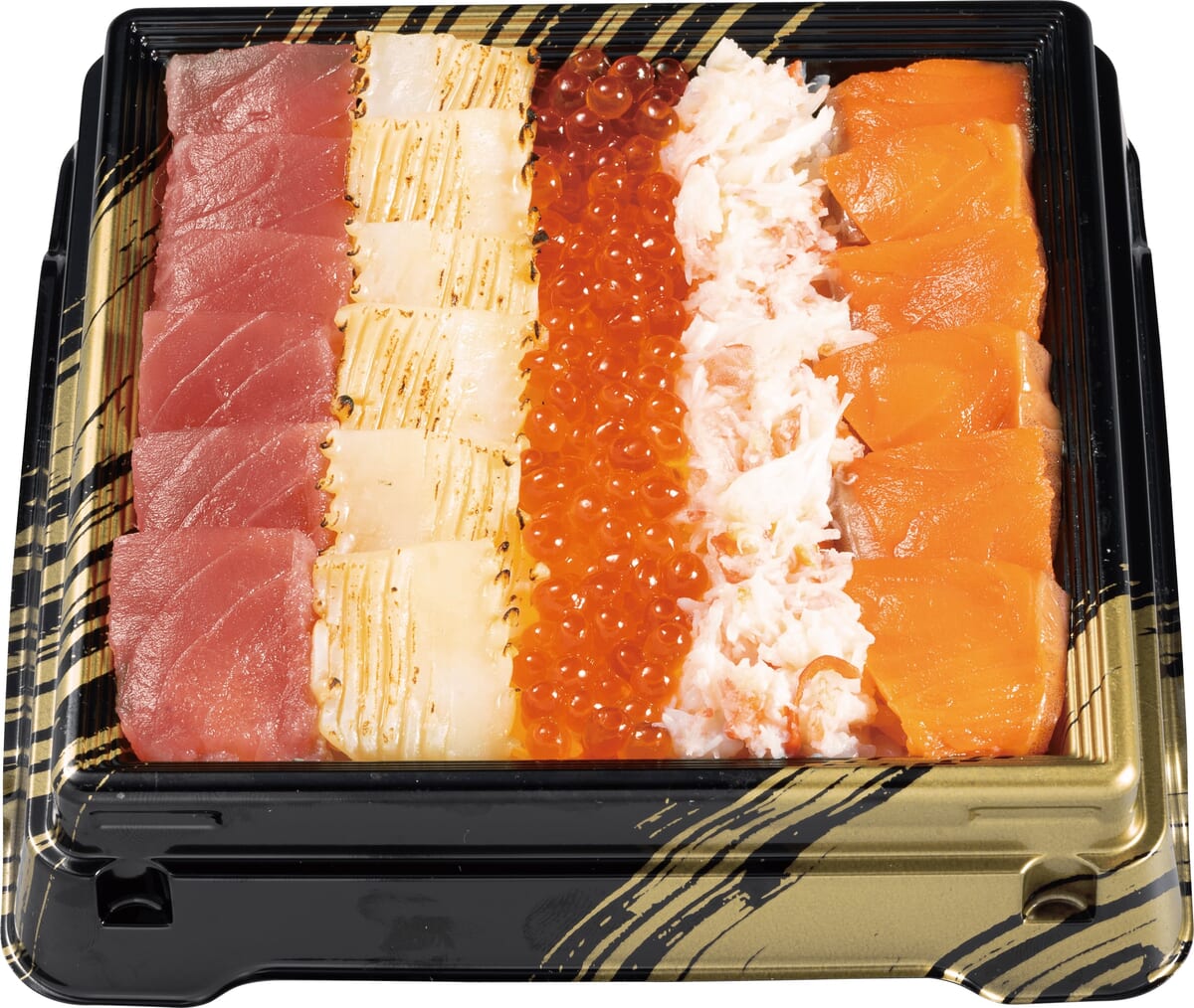 具材:まぐろ・だし醤油炙り真いか・いくら・蟹ほぐし身・サーモン