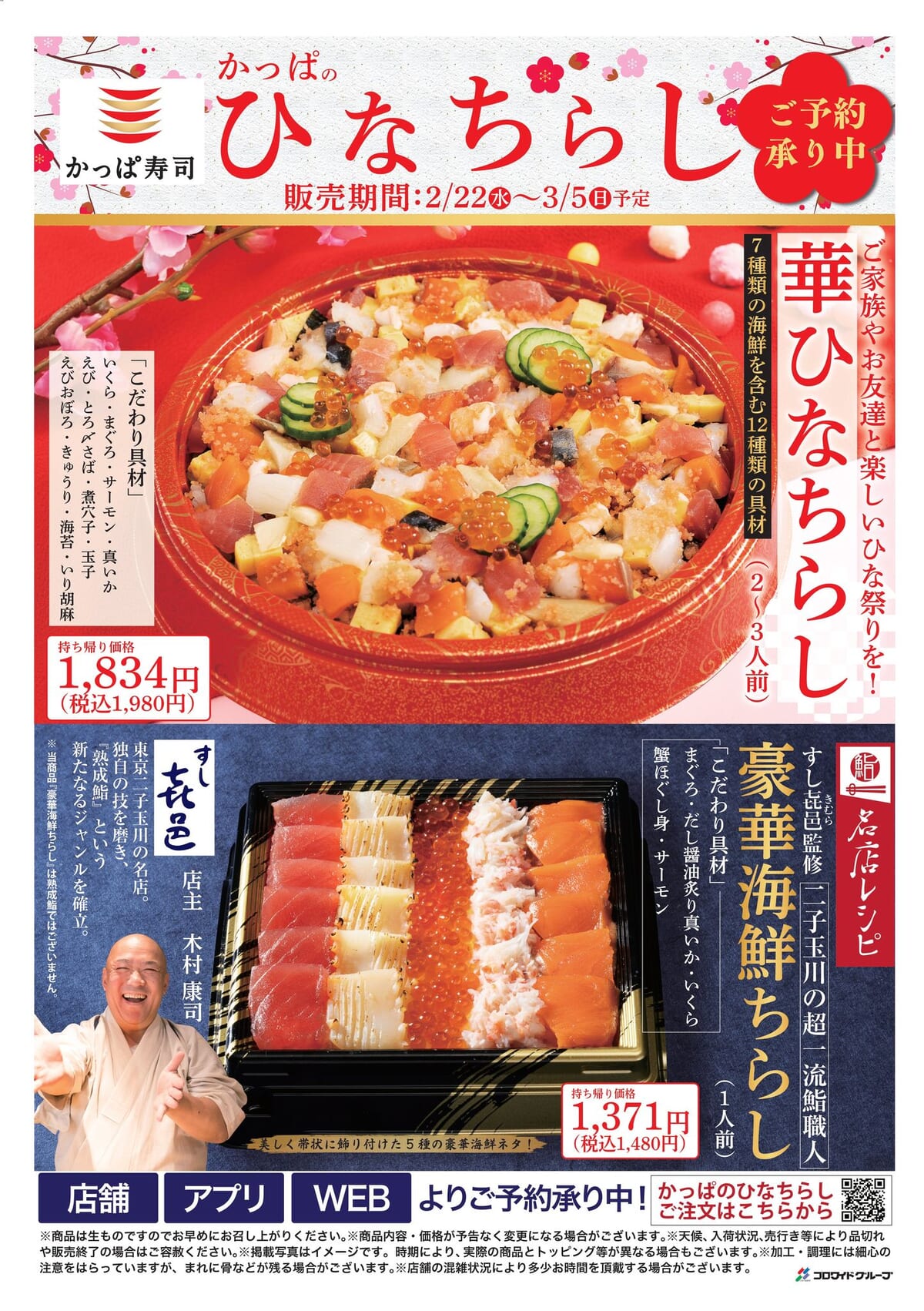 また、同日より「すし㐂邑」監修メニューを含む「かっぱのひなちらし」も発売されます☆
