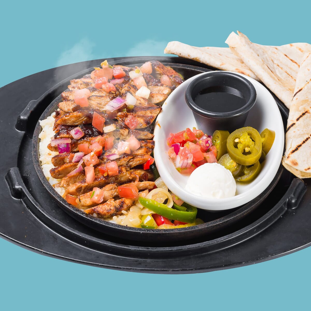 サワークリーム、ピコデガヨ、スライスハラペーニョをお好みでトッピングし、グリルしたトルティーヤに具材と一緒に巻いて味わう一品です。
