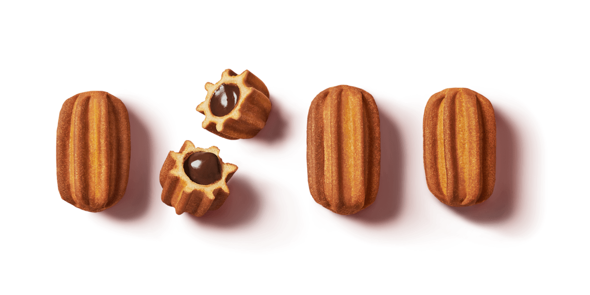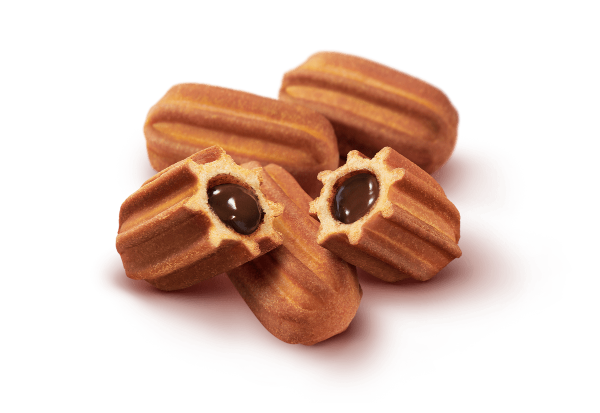 香ばしいサクサク生地にとろーりとしたくちどけのチョコクリームが入った「ひとくちチュロス」