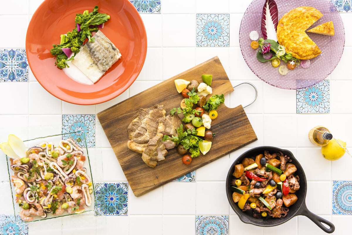 前菜には、スペインバルの定番タパス“トルティージャ”として、多くのスペイン国民に愛される「スパニッシュオムレツ」や、イカやエビなどの豊富な海の幸と新鮮な野菜をレモンとオリーブオイルであえたマリネ「魚介のサルピコン」