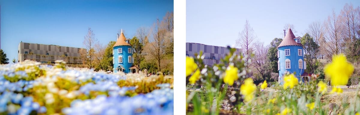 ムーミンバレーパークには、ネモフィラやラナンキュラスなど、ムーミン谷エリアを中心に春の花が咲き揃います。